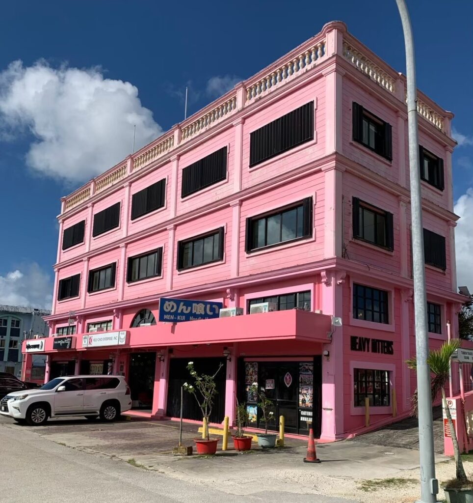 タモン地区にあるTUMON TRADE CENTERは、建物全体がピンク色に塗られた個性的なスポットです。