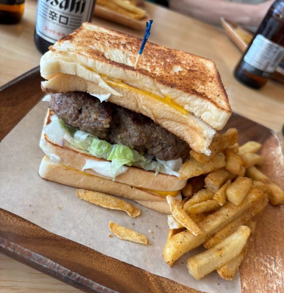 次に驚いたのが、トーストされたパンで挟んだハンバーガー。