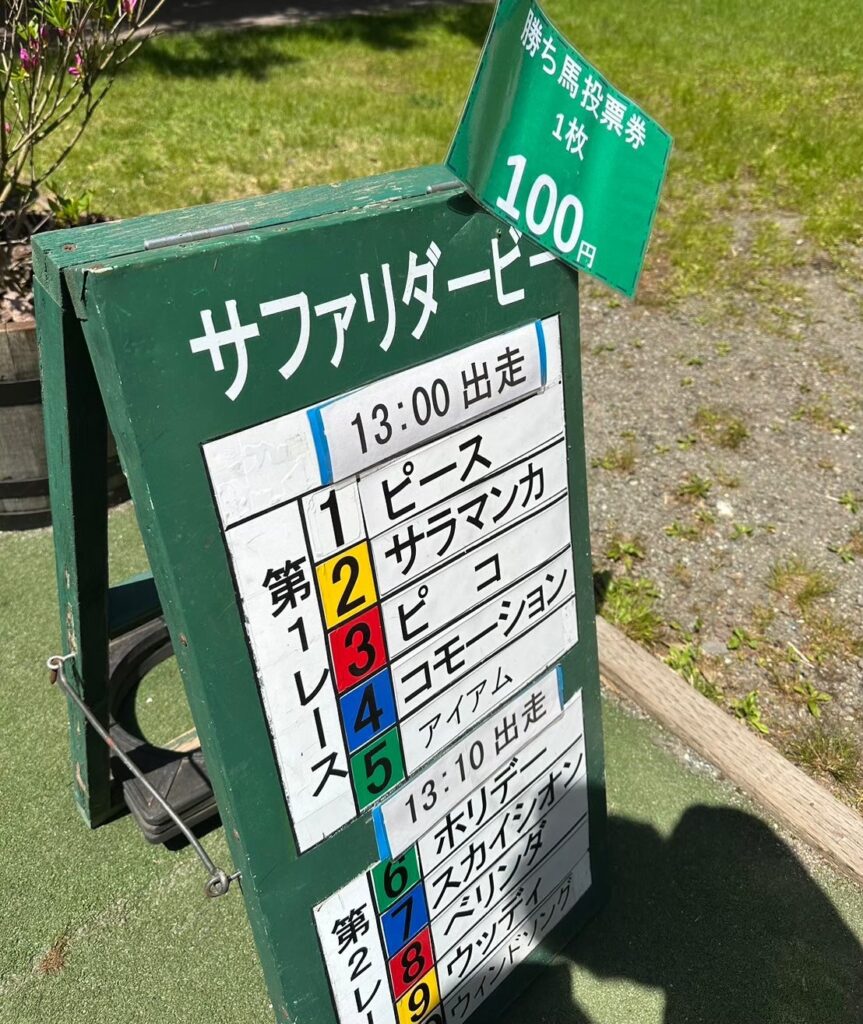 ふれあい牧場で1時間、どうぶつ村で1時間、サファリダービーの観戦で30分といったイメージです。