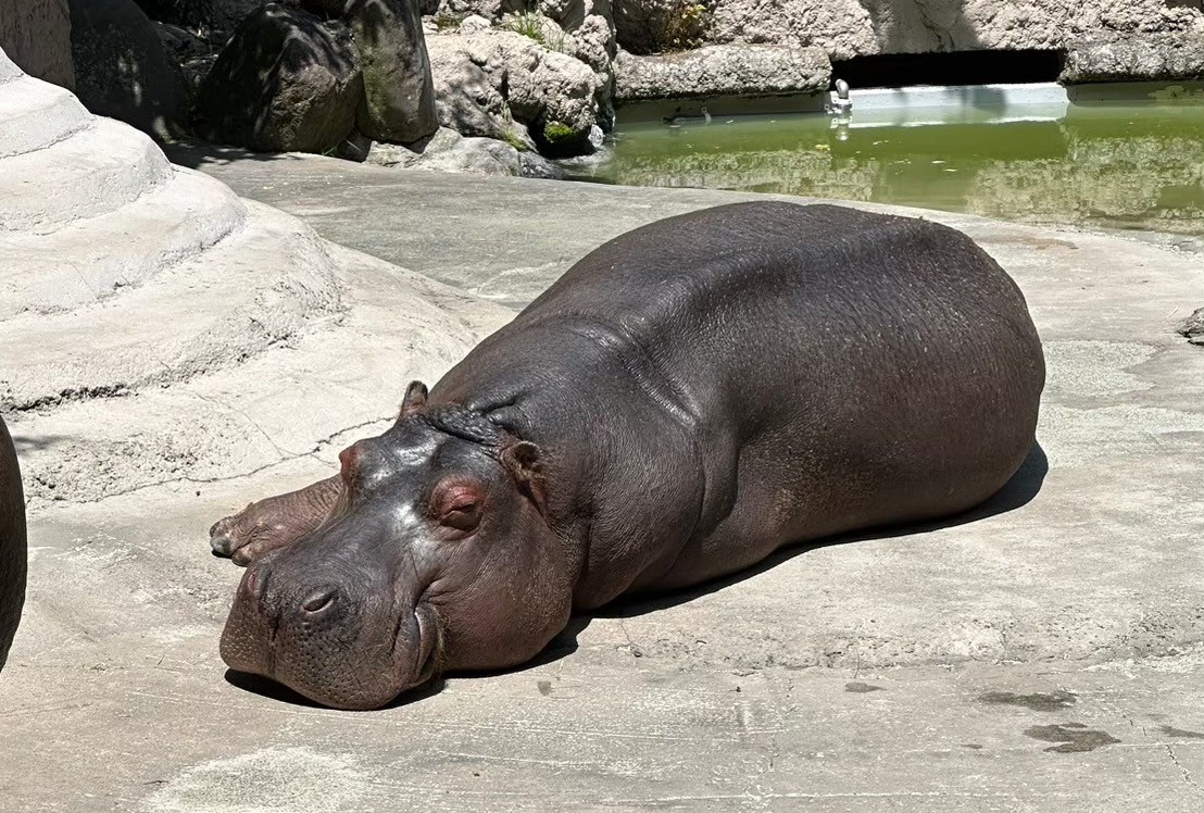 私が訪れた時は、カバが気持ちよさそうに日向ぼっこしていました。