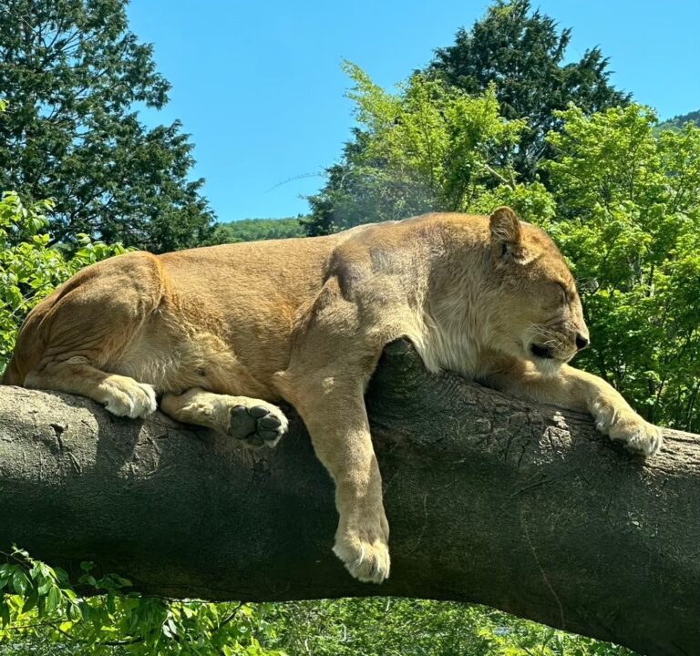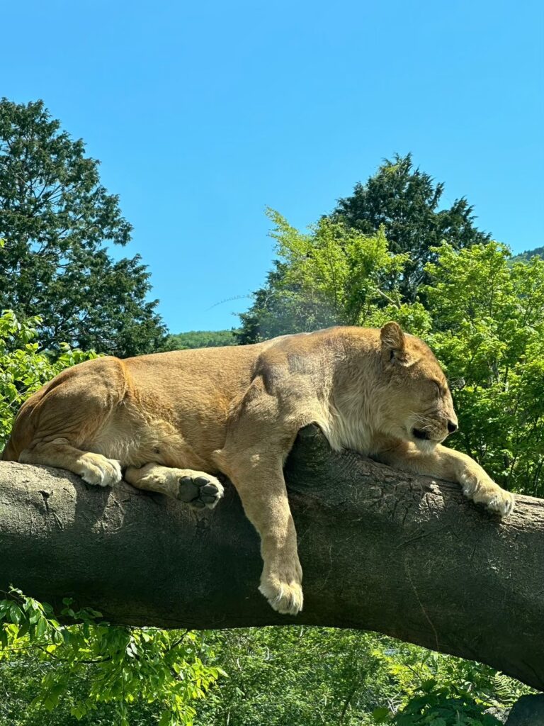サファリの王様、ライオンが待つエリア。オスの立派なたてがみと、リラックスして寝そべる姿は圧巻です。