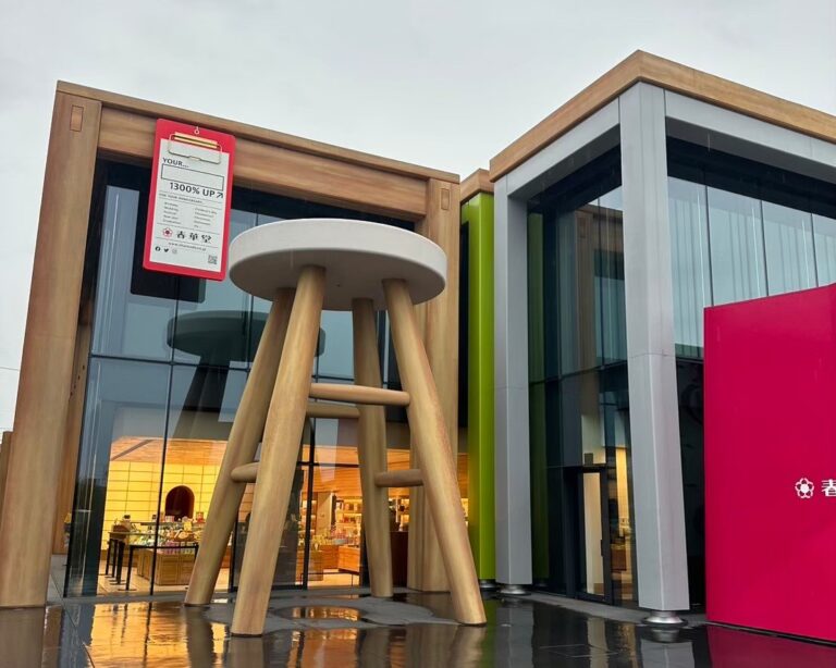 この施設、一体何が特別なのか? それは、ダイニングテーブルや椅子、ショッピングバッグなどの日用品が実物の13倍にスケールアップされた建物なんです。