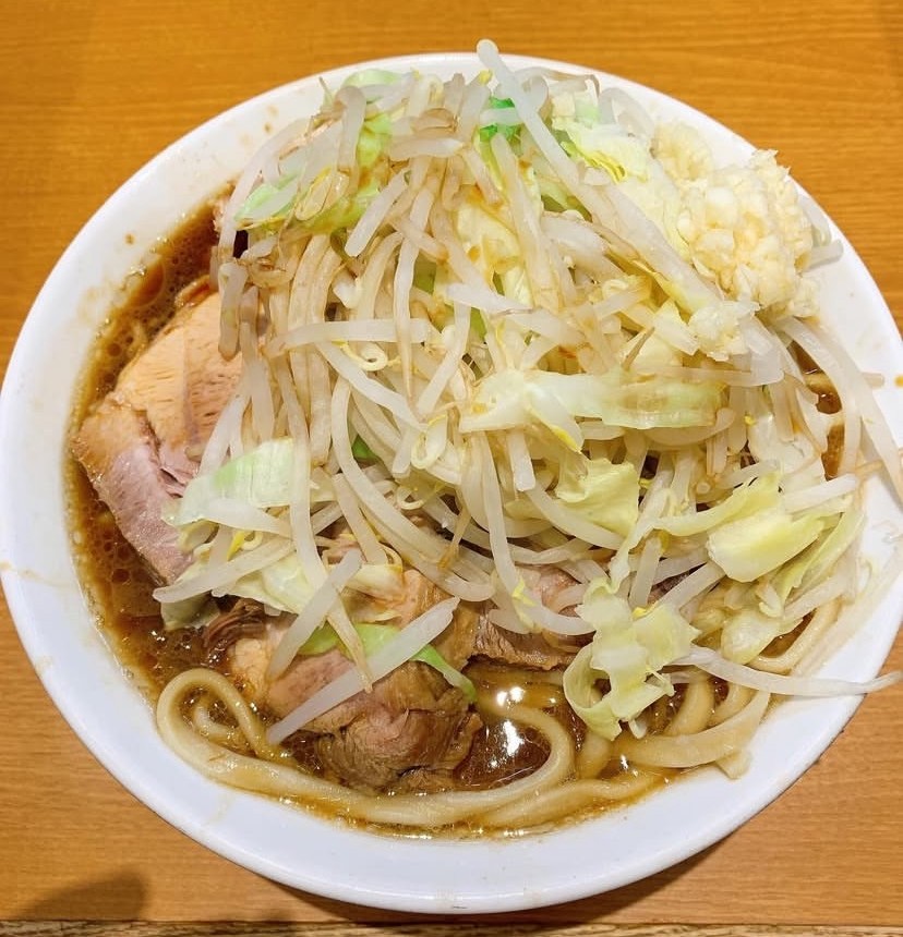 コールは「ニンニク、ヤサイ、アブラで」と伝えました。これが二郎系の基本形です。